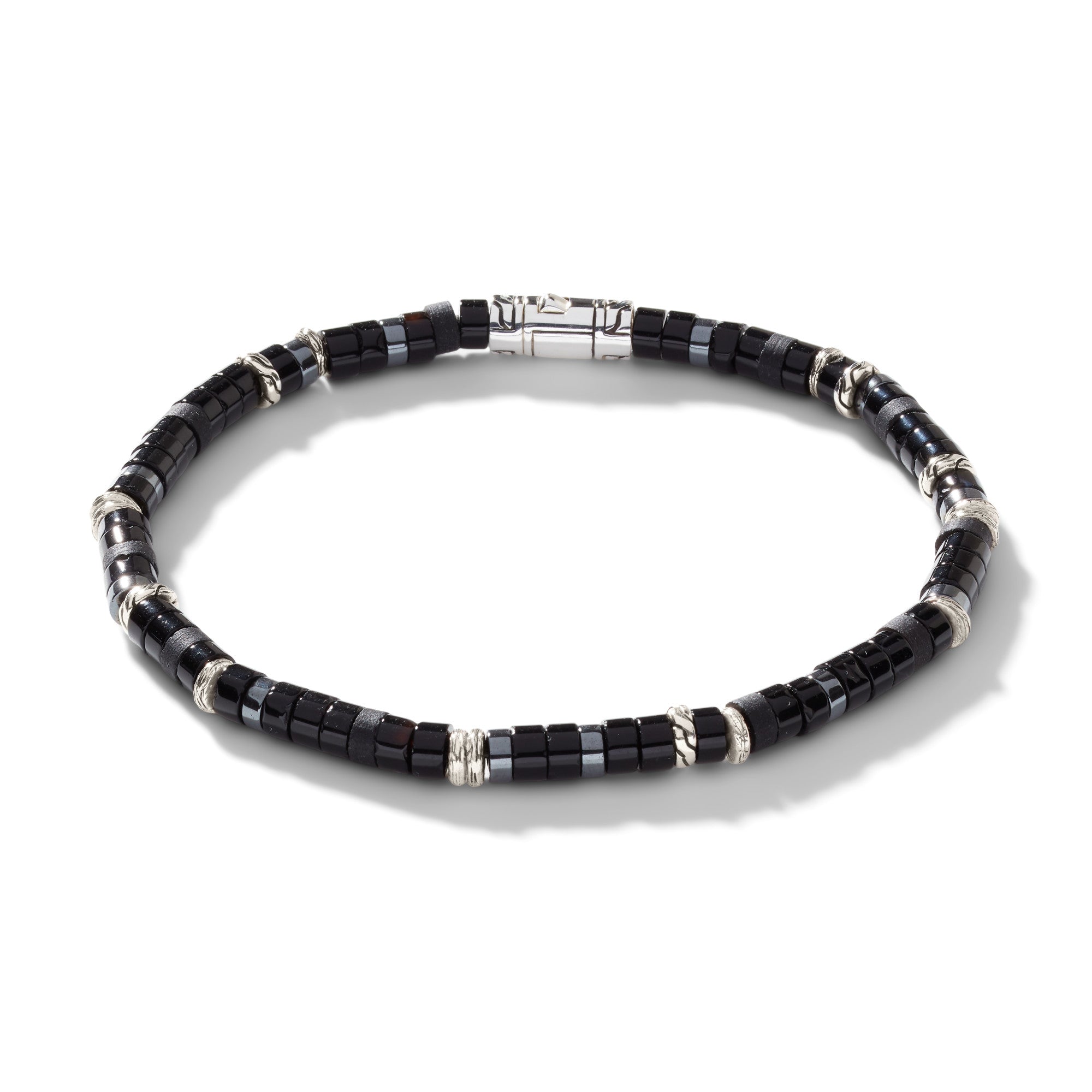 John Hardy Heishi Silver Bracelet with 4mm Treated Black Onyx and Hematite Beads