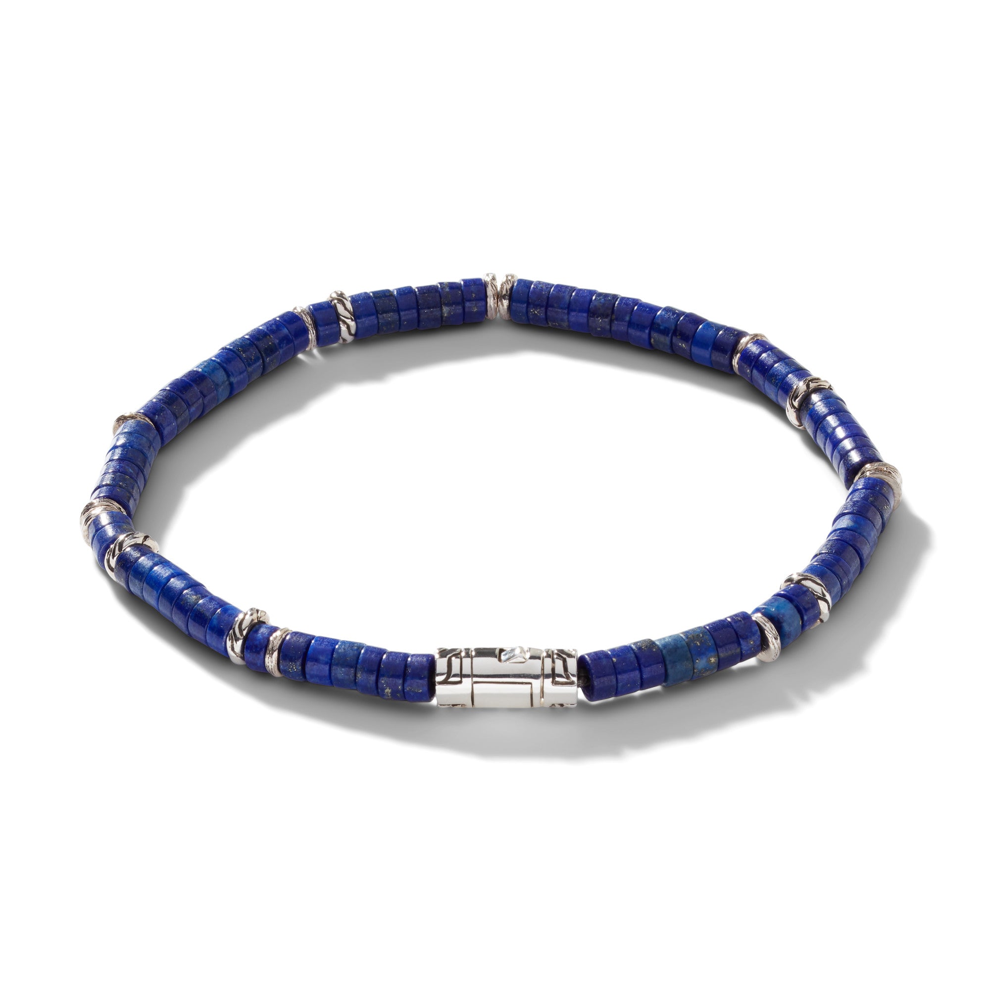 John Hardy Heishi Silver Bracelet with 4mm Lapis Lazuli Beads