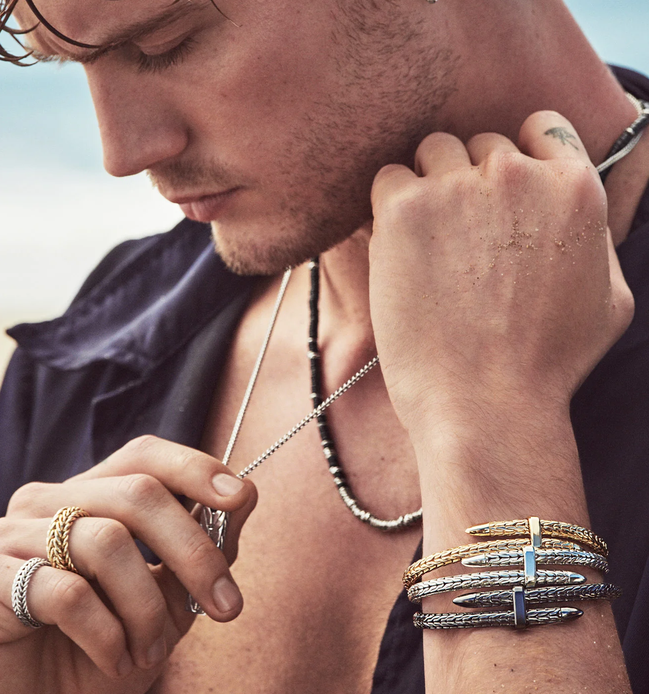 John Hardy Spear Silver 5.5mm Flex Cuff with Black Rhodium
