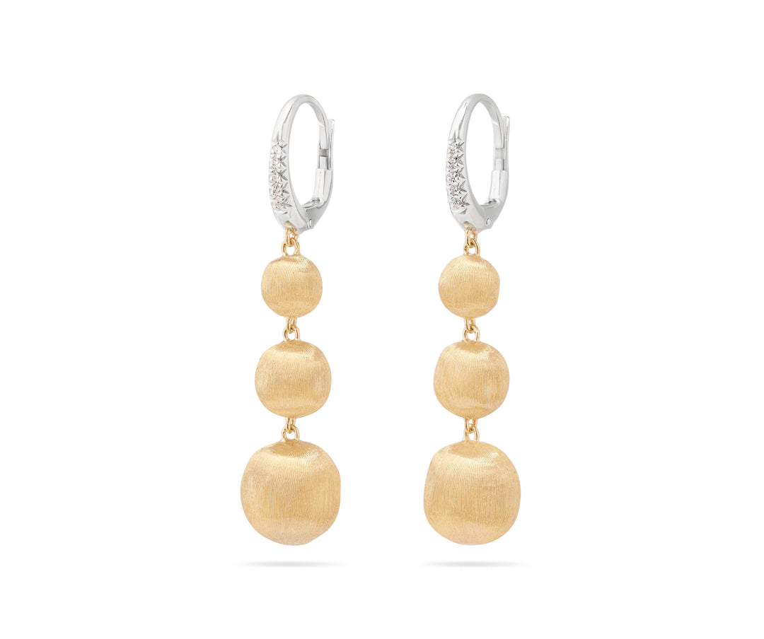 AFRICA 18K Yellow Gold Graduated Drop Earrings With Diamond Clip